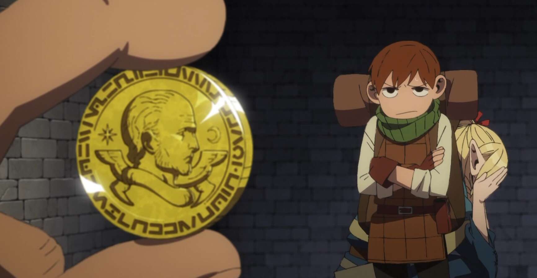 食べられない宝虫をチルチャックは深層へと捨てますが、実は食べられない宝虫は本物の宝石だとセンシから教えられます。本物の宝石と分かりチルチャックとマルシルは、それを先に言えーっ!!と、センシに叫びます。一方、剣に棲み着いた魔物に愛着がわいたライオスは、ケン助と命名します。