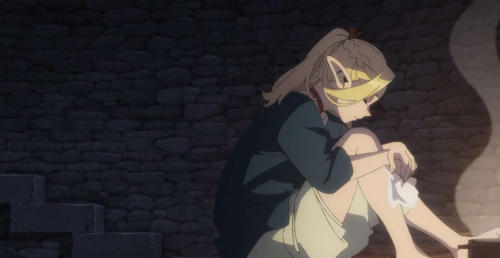 チルチャックは今後の計画をマルシルとセンシに説明し、出来るだけ早く目的地であるレッドドラゴンの出現場所まで辿り着こうと言います。そして、ロウソクが消えたらライオスを叩き起こすので、マルシルとセンシに準備をするように言います。マルシルは体を拭きたいと言い、チルチャック達は気を利かせて部屋から出ようとします。しかし、マルシルは服を着たままでやれるので外に出る必要がないとチルチャックに言い部屋の隅で拭きますが、昔と比べて今のパーティーは男ばかりで気を遣う、と不便さを感じます。