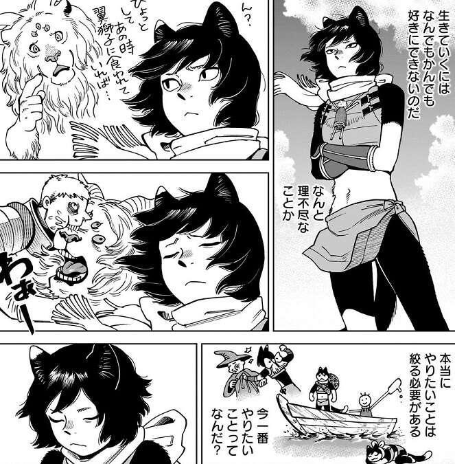 皆の今後の話を聞き、せっかく自由になったのに好きに出来ない現状にイヅツミは無性にむしゃくしゃしてしまいます。自分のために飯を作ってくれないセンシ、他の奴のためにどこかに行ってしまうチルチャック、好きな時に会えなくなるマルシル、一緒に冒険するつもりだったのにライオスを王にするのに必死なヤアド、とイヅツミの好きなように出来ない事に理不尽さを感じます。そして、いっそあの時翼獅子に食われていた方が、良かったのでは?と、イヅツミは考えてしまいます。イヅツミは本当にやりたい事を絞ろうと、今一番やりたい事を考え結論が出ます。