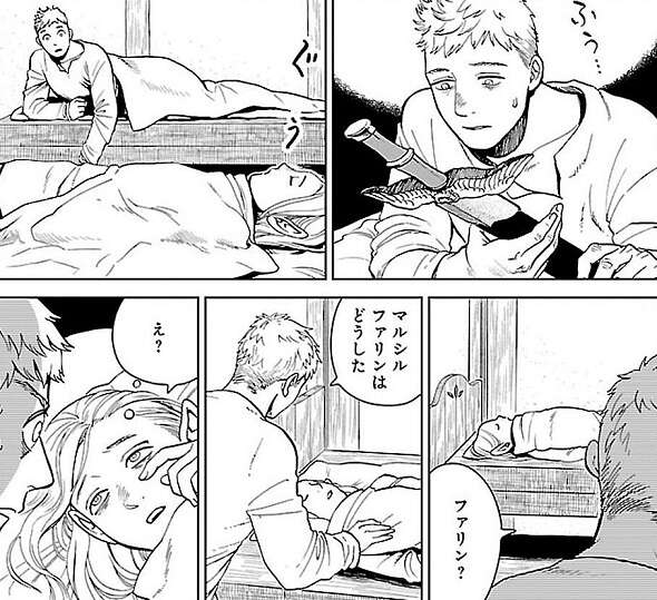 今後の為にもライオスに治療や防御魔法を使えるようになって欲しいと、マルシルは魔術をライオスに教えます。ファリンの兄だけあって素質があるのか、すぐにマルシルの耳の傷の治療に成功しますが、チルチャックはあまり嬉しそうではありません。リーダーであるライオスには人を繋ぎとめる能力、魔術よりも社交術や人を見る目を養って欲しいチルチャックとしては、マルシルと意見が対立します。