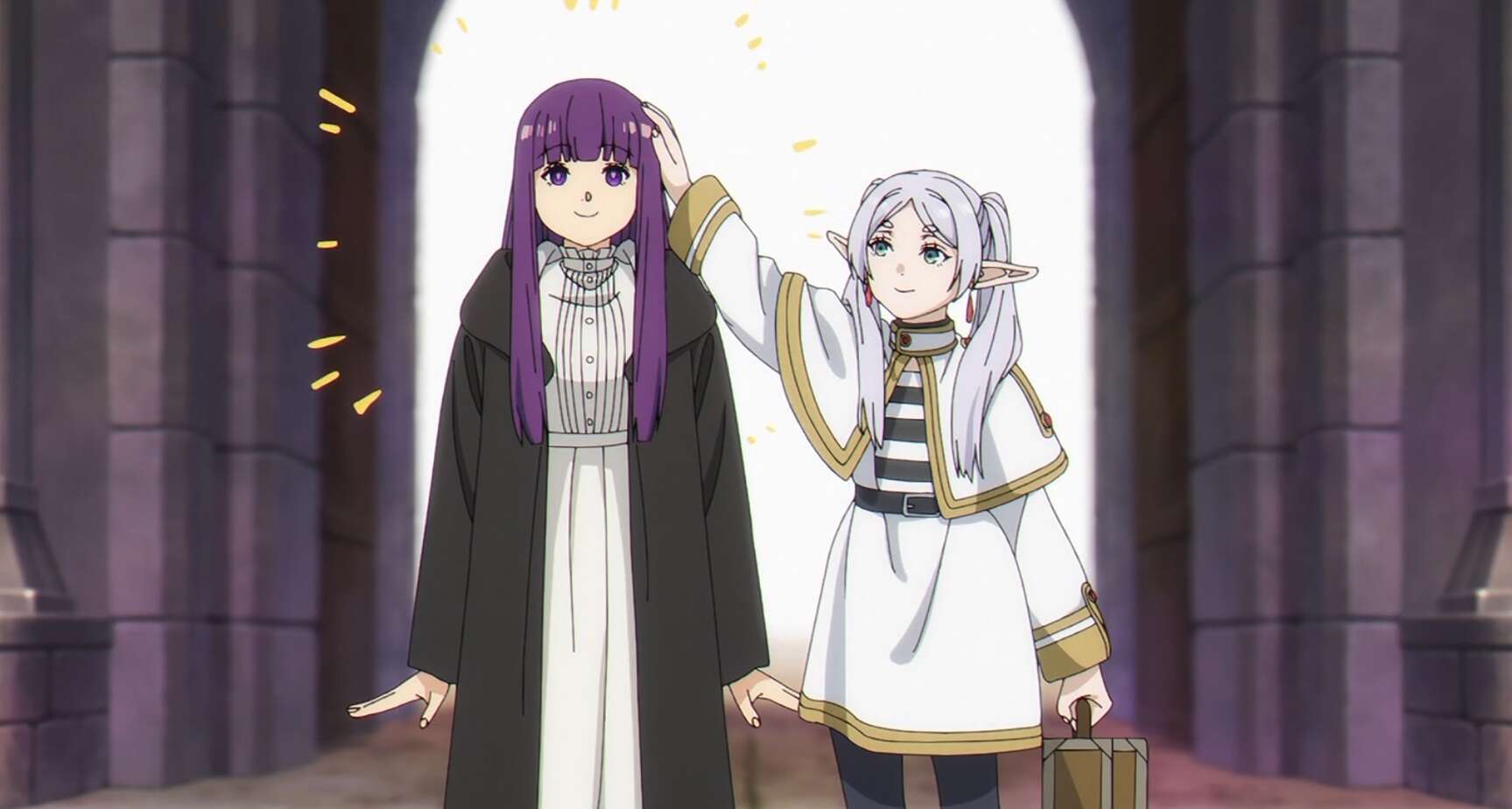 フェルンはフリーレンに特権にどんな魔法を貰ったのか聞かれ、“服の汚れをきれいさっぱり落とす魔法”を貰ったと言います。服がきれいになり、フローラルな香りがする魔法を見て、神話の時代に存在したとされる伝説級の魔法だよ、とフリーレンは言うと、フェルンの頭を撫でて、でかしたフェルン、それでこそ私の弟子だ、と褒めます。
