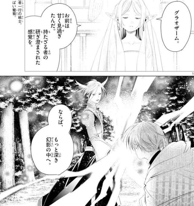 フリーレンは普段から魔力探知に頼り切っている弊害で、ヒンメルのように現実世界の事を感じることが出来ないようです。しかしそれは魔族も同じで、グラオザームにヒンメルを甘く見過ぎていた、とフリーレンはつぶやきます。グラオザームはヒンメルをもっと深い幻影の中へと連れて行こうとし、さらに魔法を使おうとします。