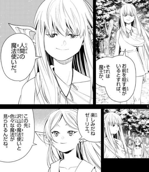 お前を殺す者がいるとすれば、それは魔王か、人間の魔法使いだ、とゼーリエはフリーレンに警告しますが、フリーレンはそんなことは気にせず、この先沢山の魔法使いと色々な魔法が見られるんだね、と言いそんな時代が来るのが楽しみだとゼーリエに言います。