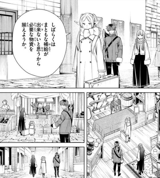 この関所を抜けるとしばらくはまともな補給が出来ないので、フリーレン達はここで必要な物資を買いそろえます。そして、必要な書類を提出し関所を通過し北部高原へと入っていきます。