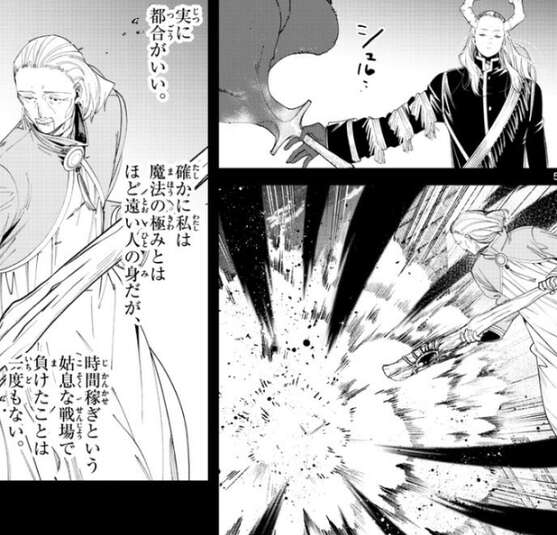 レルネンはマハトが自分を完全に舐めていると分かり、逆に都合がいいと考え、時間稼ぎという姑息な戦場で負けたことは一度もない、とレルネンは心の中で思うと距離を取って攻撃、を繰り返します。