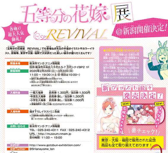 次は2021年3月の「五等分の花嫁展 MAKEOVER」名古屋会場でお会いしましょう!#五等分の花嫁 #五等分の花嫁展 pic.twitter.com/0VUJx68Tur— 五等分の花嫁展【公式】 (@5Hanayome_ten) December 6, 2020