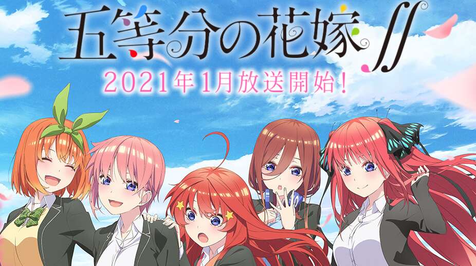 週刊少年マガジンで連載されていた五等分の花嫁の、アニメ2期『五等分の花嫁∬』が2021年1月7日からTBS、サンテレビ、BS11にて放送されます。