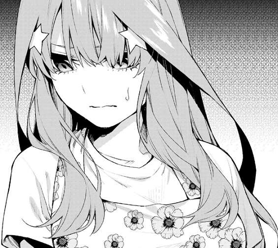 五つ子たちの部屋にたどり着くと、五月はリビングで一人勉強をしています。五月は風太郎に、あなたは私のように絶対にならないでくださいと以前母親から言われたことを伝えます。そして五月は、それでも諦められず母親を目指してしまっている自分は間違っているのでしょうか?と風太郎に質問します。