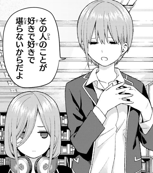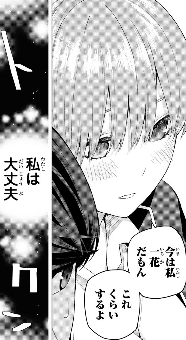 ただ三玖は「今は私一花だもん」「これくらいするよ」と最後は自分の意志ではないことを強調してごまかします。