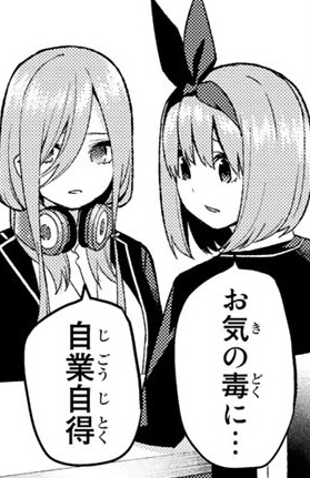 三玖と四葉は「自業自得」「お気の毒に…」と言います。三玖冷たい。