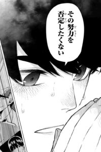 全員平等もいいけどその努力は否定してはいけない、公平に行こうと言います。ここで三玖は一花に「平等に」と言って、キャンプファイヤーのダンスの相手を譲ったことを思い出し自分も公平に行こうと考えます。