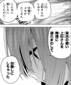 しかし五月は無駄ではなかったと言います。風太郎のしおりには、らいはへの土産話のメモとして四葉との思い出話もちゃんと書かれています。