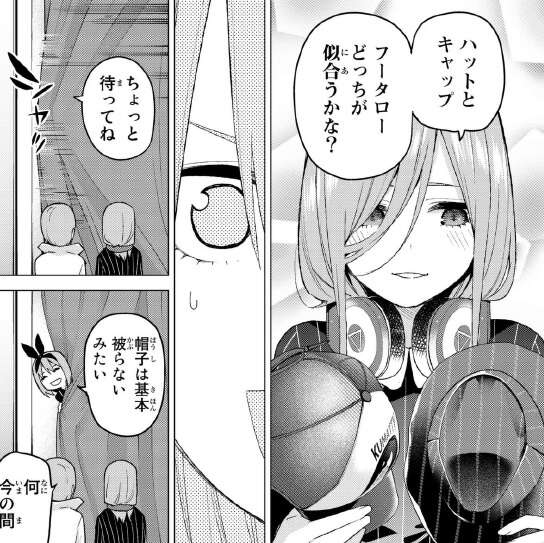 何とか試着室から脱出して一花と三玖に見つからずに、店から脱出できました。が、今度はらいはに出会ってしまいます。