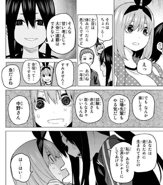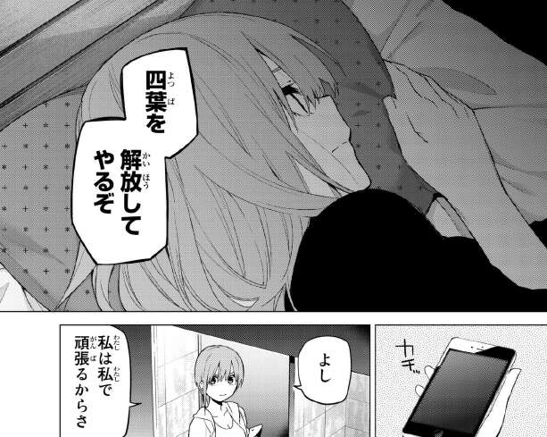 四葉を陸上部から解放しようと力をあわせる風太郎達です。