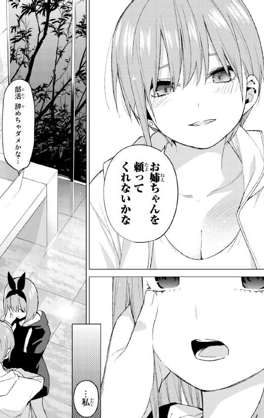 一花お姉さんには素直に本音を話せる四葉です。部活は辞めて勉強に集中したいのが、四葉の本音でしょう。