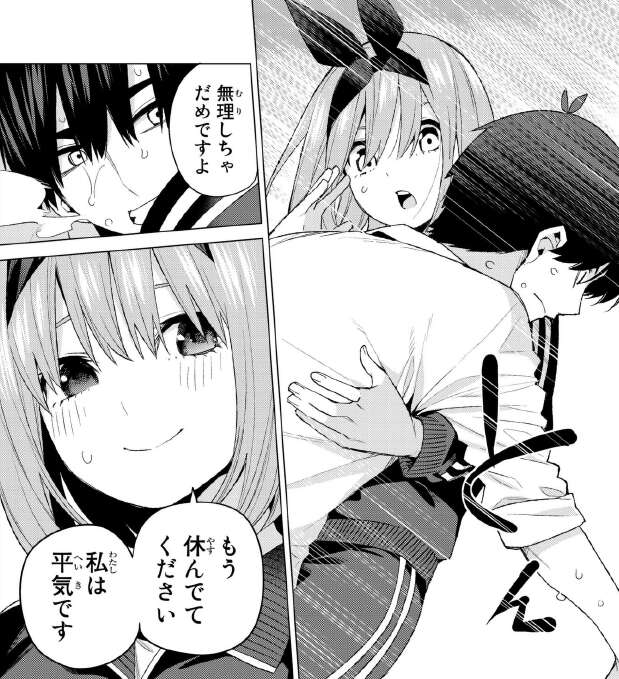 自分は平気だと言って風太郎に無理をさせない四葉です。