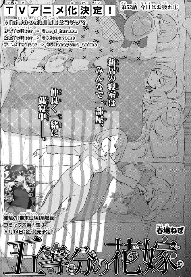 […] 【ネタバレ】五等分の花嫁 52話 『今日はお疲れ①』の感想 […]