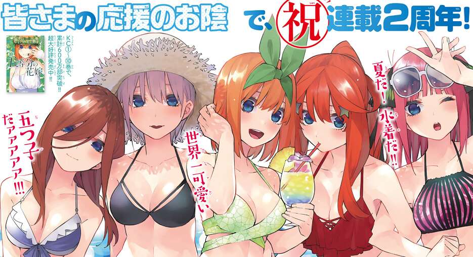 今回で五等分の花嫁も2周年で、巻頭カラーから始まっています。