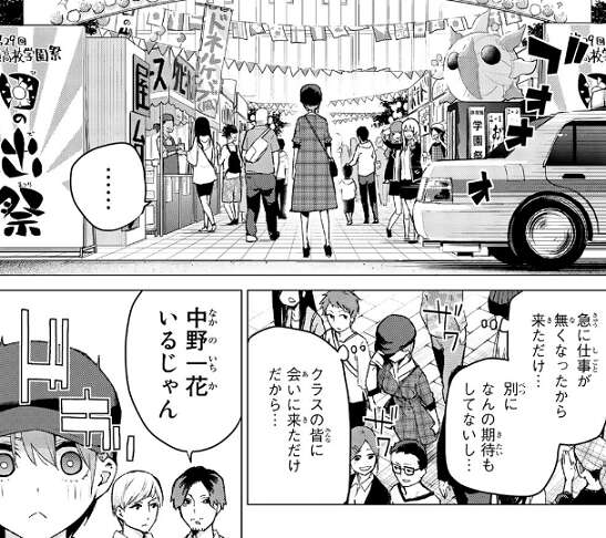 文化祭 本編では風太郎が五人を好きだと告白した後、最終日には答えを出すと言い、誰か一人を選ぶととれる発言をしたり、小学生時代の同級生 竹林が再登場したり、父親との確執について描かれていたりと、見どころ満載です。