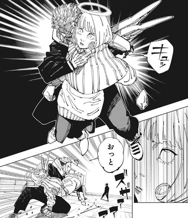 前回の記事はこちらです。伏黒達と合流した真希は、九十九が羂索に敗れ天元が羂索に獲られたことを伝えます。
