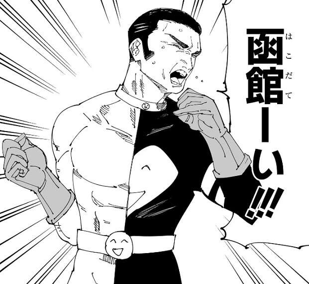ここで髙羽が、はーるばる来たぜ函館―い!!!と、歌いながら突然現れます。羂索は自分への刺客として髙羽が選ばれたのが意外過ぎて思わず、…えぇ?マジで?と、つぶやいてしまいます。それでもここは岩手県なので、函館と歌っていた髙羽に、岩手ね、と律儀にツッコむことを羂索は忘れません。