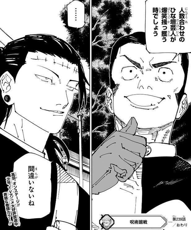 週刊少年ジャンプに掲載されている、呪術廻戦 第239話のネタバレ、感想です。