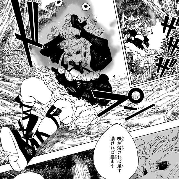 髙羽は羂索と対峙すると、世の中興奮することはいっぱいあるけど一番興奮するのは、人数合わせのひな壇芸人が爆笑掻っ攫う時でしょう、と笑顔で言い、羂索も、間違いないね、と同意します。