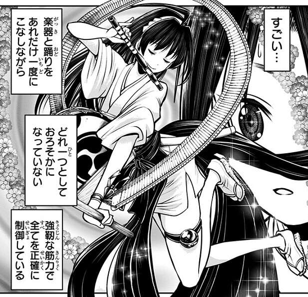 新三郎の追及は難なく躱した時行ですが、今度は補佐役・市河を呼び貞宗と市河の二人で至近距離から時行が嘘を言っていないか見極めようとします。時行のピンチを察した逃若党の便女・亜也子は機転を利かせて、楽器を奏でて田楽を舞い踊り時行のピンチを救います。時行は亜也子に助けられたことで心の平静さを取り戻し、貞宗は時行が嘘を言っているか問い詰めることを断念します。