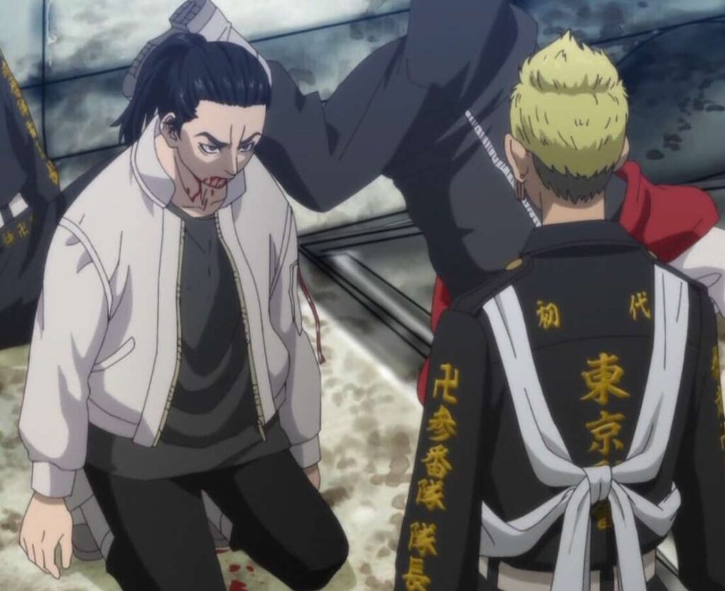一虎を含め、三人を倒したマイキーですが、鉄パイプで殴られたマイキーはその場に座り込んでしまいそのまま動けなくなってしまいます。それを見た芭流覇羅のメンバーは無敵のマイキーを倒すチャンスと、マイキーに止めを刺そうと殺到します。