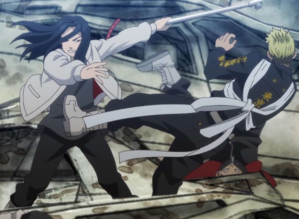 場地は稀咲を鉄パイプで殴りますが、その後場地は参番隊の副隊長に投げ飛ばされてしまいます。