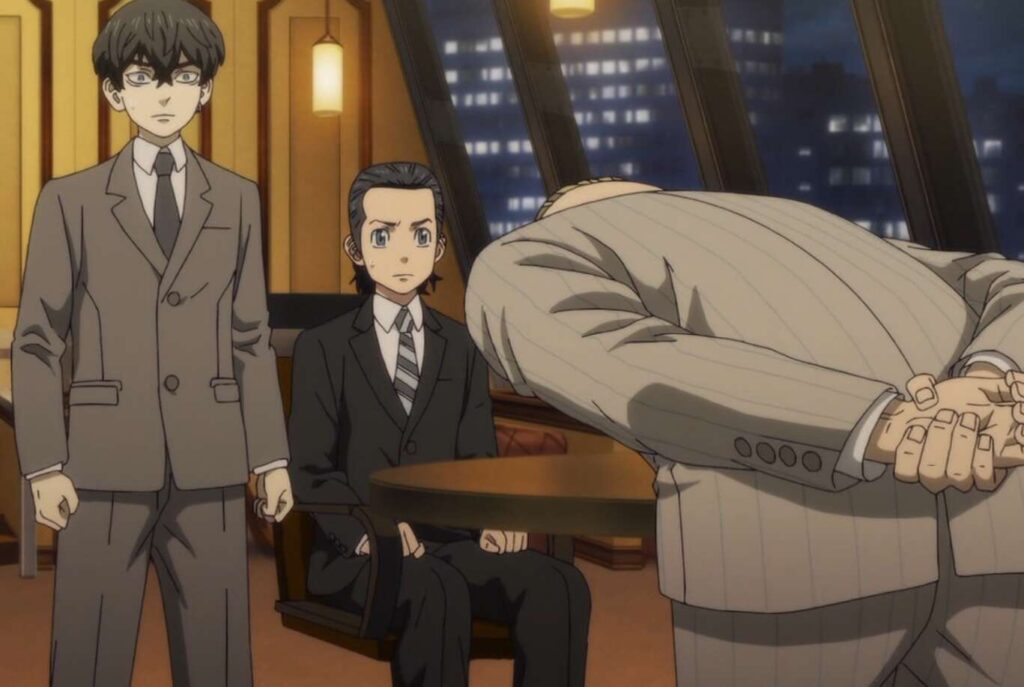 溝中メンバーもいかつい風貌に代わっており、さらに自分の家はボロアパートから高級マンションに変わっていて、自分の部屋にいた千冬から“幹部会”に出席するように言われます。
