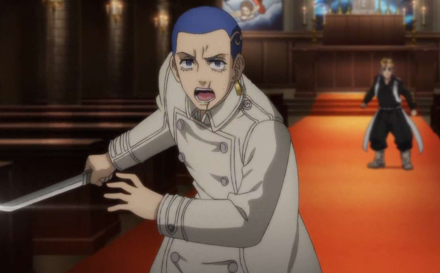 大寿は柴家の問題に二度も口をはさんだ武道を許さず、武道を殴ってぶっ飛ばします。武道は大寿の迫力と力に圧倒されてしまい、殺されると恐怖します。その後、大寿は八戒の秘密を武道に話そうとしますが、その話の途中で突然、柚葉が教会に乱入してきます。そして、柚葉はナイフを大寿の背中に刺して、大寿を殺そうとします。
