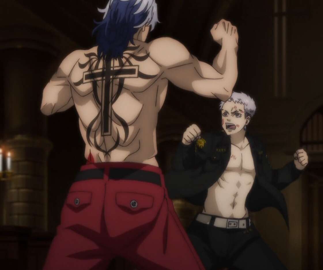 しかし、三ツ谷の説得で武道は戦意を取り戻し、武道はココに、千冬はイヌピーに挑み、大寿には三ツ谷と八戒の二人で挑もうとします。