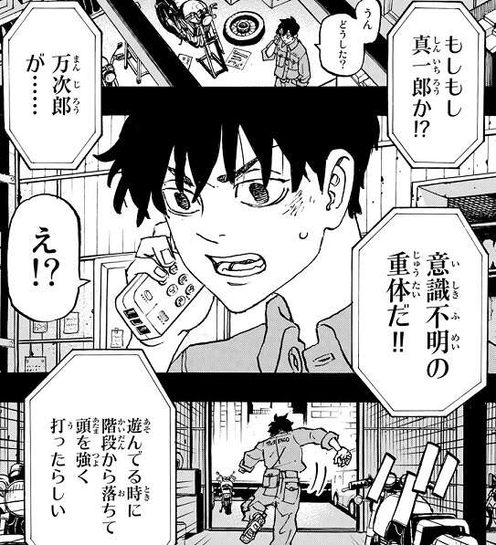 場面は真一郎が初代黒龍(ブラックドラゴン)を結成、解散した頃に戻ります。真一郎は亡くなった父親の墓に向かって、マイキーを立派に育ててみせる、と誓います。しかし、マイキーは真一郎に買ってもらったコンコルドのプラモデルで遊んでいる時に、階段から落ちて頭を打ち、意識不明の重体となってしまいます。
