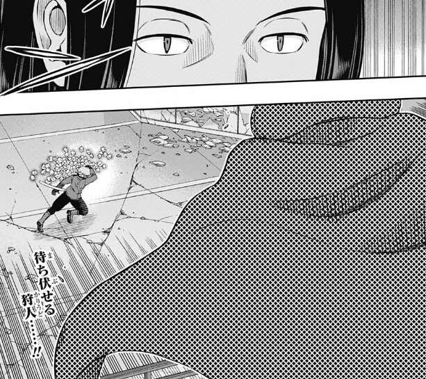 ヒュースはじわじわとエスクードで逃げ道を塞いでいき、小荒井を追い込んでいきます。ショッピングモールから小荒井が脱出するにはどこかで壁を破壊する必要がありそうですが、その場合はヒュースに見つかりそうです。
