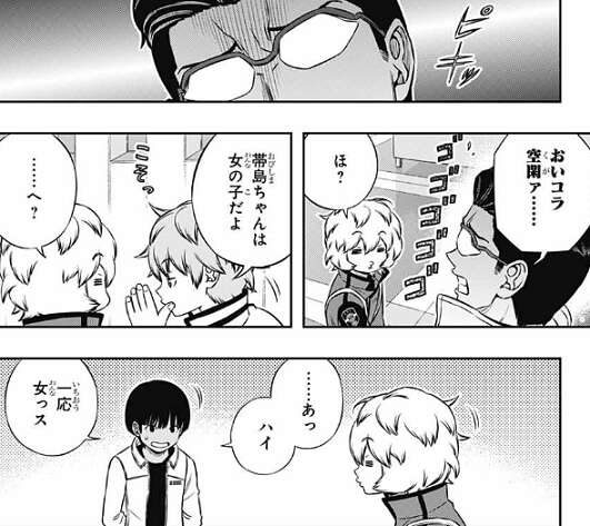 次回、最終戦の相手二宮隊、生駒隊、そして最後のチーム、弓場隊の登場です。弓場は気合の入った性格で、隊員の帯島にも気合の入った自己紹介をさせます。空閑は気軽に握手しますが、帯島の性別を間違えるというミスをしてしまいます、蘇る過去の苦い思い出、即土下座です。