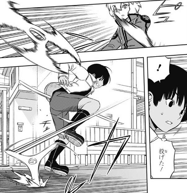 緑川もなんか新技でも見せてあげないと帰れないよ、と言いこのままでは帰れない雰囲気になり仕方なく空閑は1回だけと何かを見せようとします。