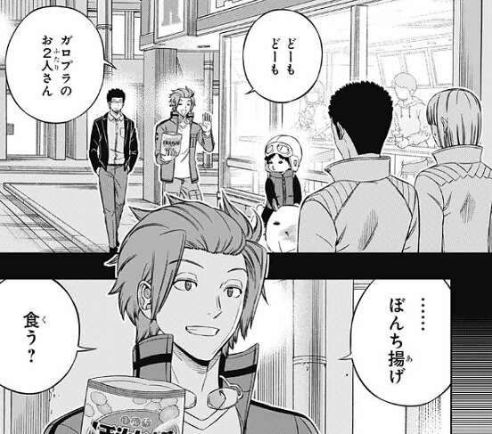 レギーは陽太郎を人質にした過去があるので、陽太郎に見つかり動揺しますが、直後に迅と林藤支部長も現れて、ガロプラのラタとレギーに自己紹介をします。
