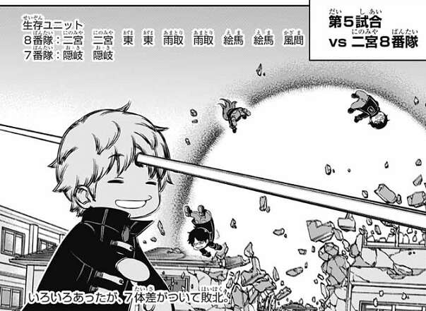 第1試合で敗北してしまった諏訪7番隊、作戦を変えて第2試合に臨みますが、その後も連戦連敗してしまい5連敗してしまいます。特に二宮8番隊は前評判通り、とんでもない戦力のようで7体差をつけられた圧倒的敗北です。