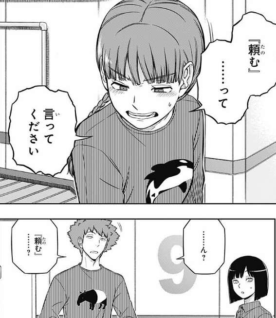 それを聞き、照屋は『頼む』……って言ってください、と顔を真っ赤にして水上に言います。