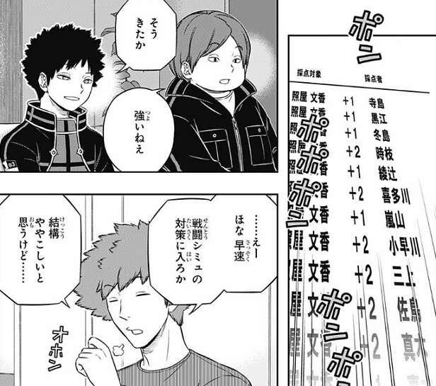 それでも樫尾は王子隊でなれているのか、ルールの確認からでしょうか?と、戦闘シミュに取り組もうとし、荒船もソフトのダウンロードからだな、と指示しますが、照屋は納得できずに、色々おかしいと言い、戦闘シミュに取り組む気になりません。