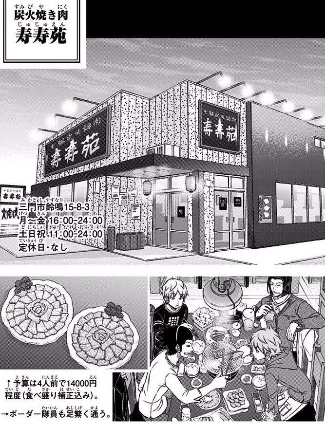 ボーダーではすき焼きをするとき、ここが一番?だそうです。ここで食事をすると近界民に襲われなくなるというジンクスがあるそうです。